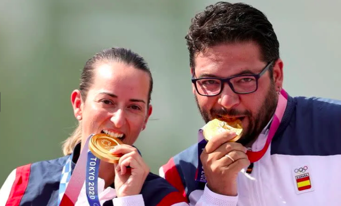 The 38-year-old Spanish trap shooter and his 34-year-old Spanish trap shooting teammate claimed the gold medal in the Mixed Team Trap competition at the 2020 Tokyo Games.