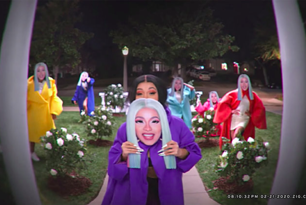 But instead of simply delivering the package to neighbors, Cardi B — along with a group of models rocking huge masks of the rapper’s face — decide to put on a runway show in front of the doorbell camera.