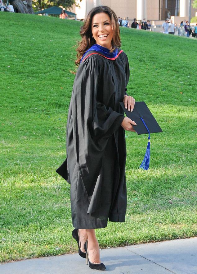 To celebrate her graduation, Longoria went to dinner with her parents after the ceremony.