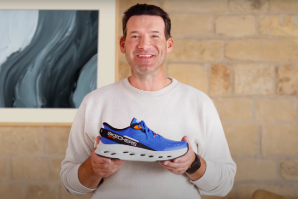 Romo, a four-time NFL Pro-Bowler, appears in a series of ads for Skechers’ Hands Free Slip-ins Collection, which features shoes designed with flexible materials, tie-free laces and an exclusive “Heel Pillow,” that allow you to step in without bending over.