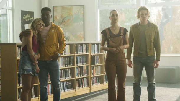 Based on Karen M. McManus’ bestselling novel, One of Us Is Lying tells the story of what happens when five high school students — Simon (Mark McKenna), Addy (Annalisa Cochrane), Cooper (Chibuikem Uche), Bronwyn (Tejada), and Nate (Cooper van Grootel) — walk into detention and only four make it out alive. Everyone is a suspect, and everyone has something to hide.